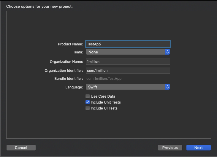 아래와 같이 Include Unit Tests를 체크하고 프로젝트를 생성하면 알아서 만들어준다.